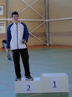 Continúan los éxitos,por segunda semana consecutiva, para el Club Bádminton Albacete. De nuevo a cargo de Miguel Serrano Quereda y en esta ocasión nada más y nada menos que en una prueba puntuable para el ranking nacional sub19 con categoría de 7*. En la localidad sevillana de La Rinconada se ha disputado el Máster Nacional sub15 y sub19, con la presencia, lógica por su categoría, de la mayoría de los mejores jugador@s de España. Miguel Serrano se ha proclamado campeón del torneo en la modalidad de dobles masculinos junto a su pareja habitual Antonio Bacete (Moral de Calatrava). Arranca así la temporada nacional de la mejor manera posible. El sorteo decidió que las cuatro mejores parejas, a priori, del torneo fuesen juntas en el mismo grupo. Esto complicó mucho la clasificación para el cuadro principal ya que solo entraban dos parejas de cada grupo. A pesar de la dureza de los tres partidos, dos de ellos con set de desempate, la pareja manchega consiguió la victoria en los tres encuentros, lo que les daba el primer puesto del grupo. En las semifinales, ante los andaluces Carrera-Cruzado, las cosas no empezaron muy bien ya que cedimos el primer set con un juego un poco desconcertante. Sin embargo la reacción fue clara desde el inicio del segundo set y se consiguió la victoria final con claridad. La final prometía ser otro duro encuentro, pero tanto Miguel como su compañero disputaron un encuentro muy serio, con mucha calidad en la defensa y se impusieron con más claridad de la esperada por 21-17 y 21-10 a los malagueños Coronado-Endtz. También en la modalidad de individual Miguel Serrano demostró estar en un gran momento de forma. Se impuso primero en sus dos encuenttros de la fase de grupo y luego alcanzo las semifinales tras derrotar a dos jugadores de mucha calidad como el madrileño Alfayate y el finalista de dobles Coronado. En las semifinales se enfrentó con Víctor Alcaide, a la postre campeón, al que no pudo superar.