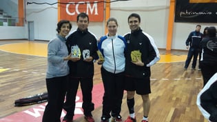 Tres nuevos trofeos han caído este fin de semana en las vitrinas del Club Bádminton Albacete, a cargo esta vez de nuestras jugadoras veteranas Leda Calero y Cristina Lamas. En la capital toledana se ha disputado una nueva prueba del Circuito Nacional de veteranos puntuable para el ranking nacional y una gran participación procedente de todos los puntos de España. Leda Calero ha sido una de las grandes triunfadoras alcanzando doblete en su categoría y en las modalidades de individual y dobles mixtos. Trabajado triunfo de la albaceteña que tuvo que superar dos de los partidos finales a tres set, tras ceder en ambos el primer set, pero sabiendo reaccionar en las partes finales de ambos partidos para alcanzar el triunfo. El segundo título lo consiguió en la modalidad de dobles mixtos formando pareja con el toledano Javier Abián. La pareja manchega, parece haber conseguido una gran compenetración y se alzaron con la victoria final sin ceder un solo set ni en la fase de grupos ni en el cuadro principal. El resultado de la final 21-12 y 21-11 contra los nº1 del cuadro, los murcianos Fernández-López deja claro el dominio de los manchegos en esta competición.